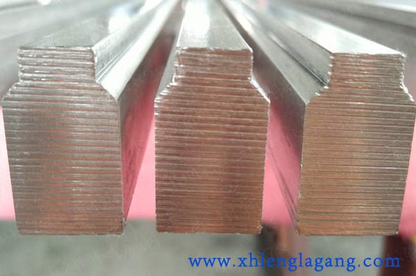冷拉帶斜角凸型鋼分為油拉和粉拉兩種生產工藝,粉拉工藝的鋼材表面沒有油,帶有一層粉末透明體保護膜,這種膜是潤滑粉生成的,在冷拉過程中起到潤滑,冷拉后起到防銹的作用,油拉表面會生成一種油膜,和粉拉一樣在冷拉過程中起到潤滑,冷拉后起到防銹作用,選擇這兩種生產工藝要看客商的需求,如果表面的油渣油膜對產品不受影響,可以選擇油拉,因為儲存時間更長,反之選擇粉拉,粉拉防銹效果不如油拉。